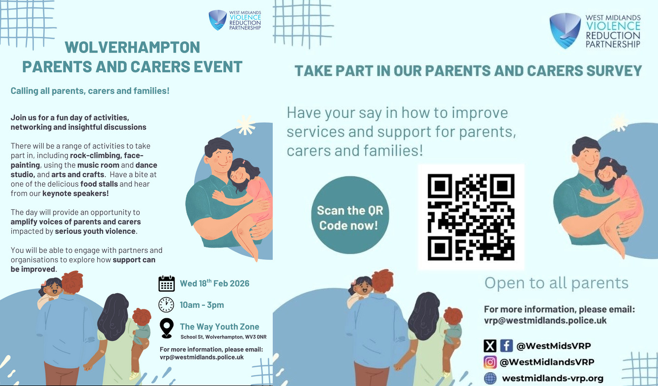 West Midlands Police and the West Midlands Violence Reduction Partnership are running a month of activity throughout February to better understand and support the needs of parents and carers across our region.